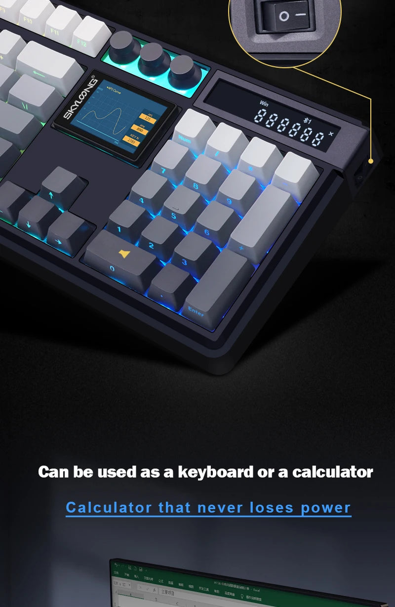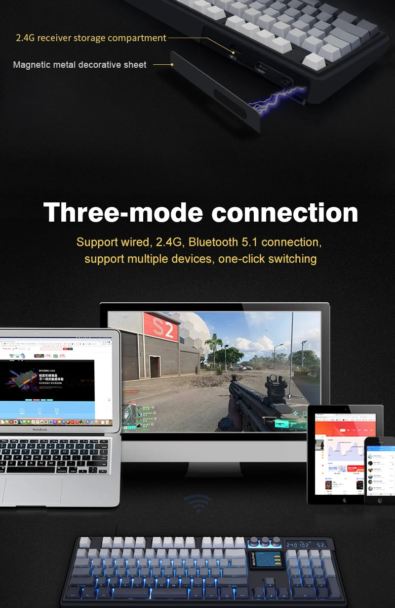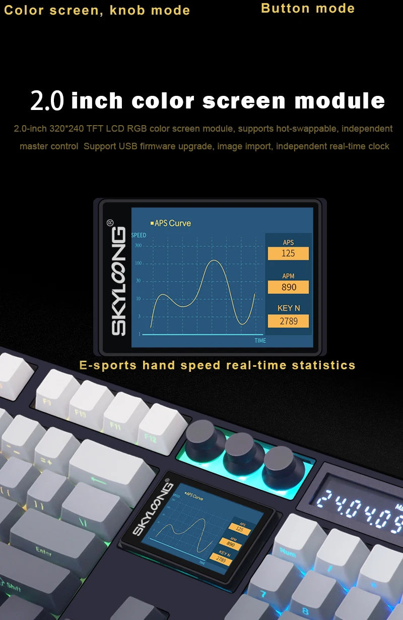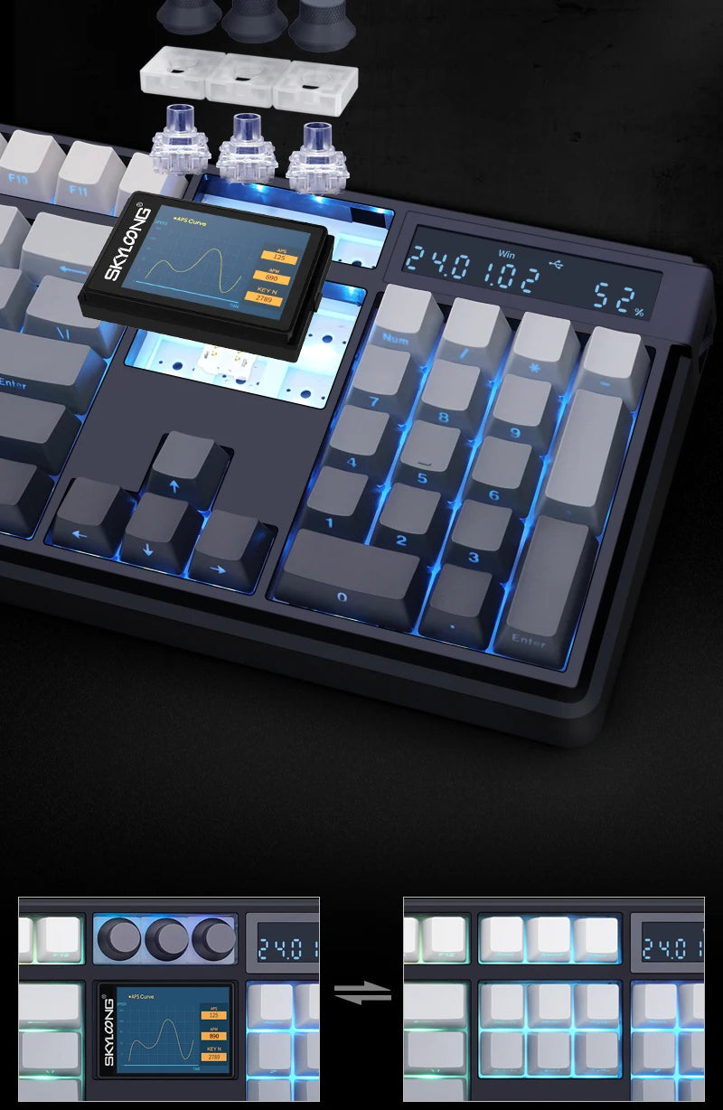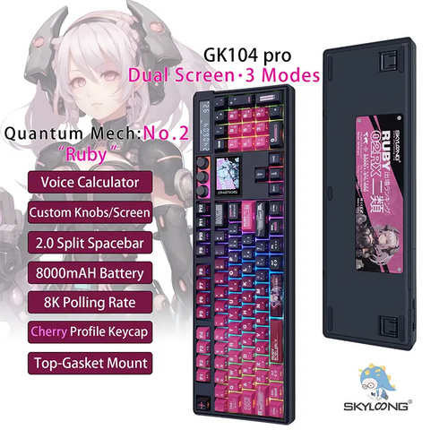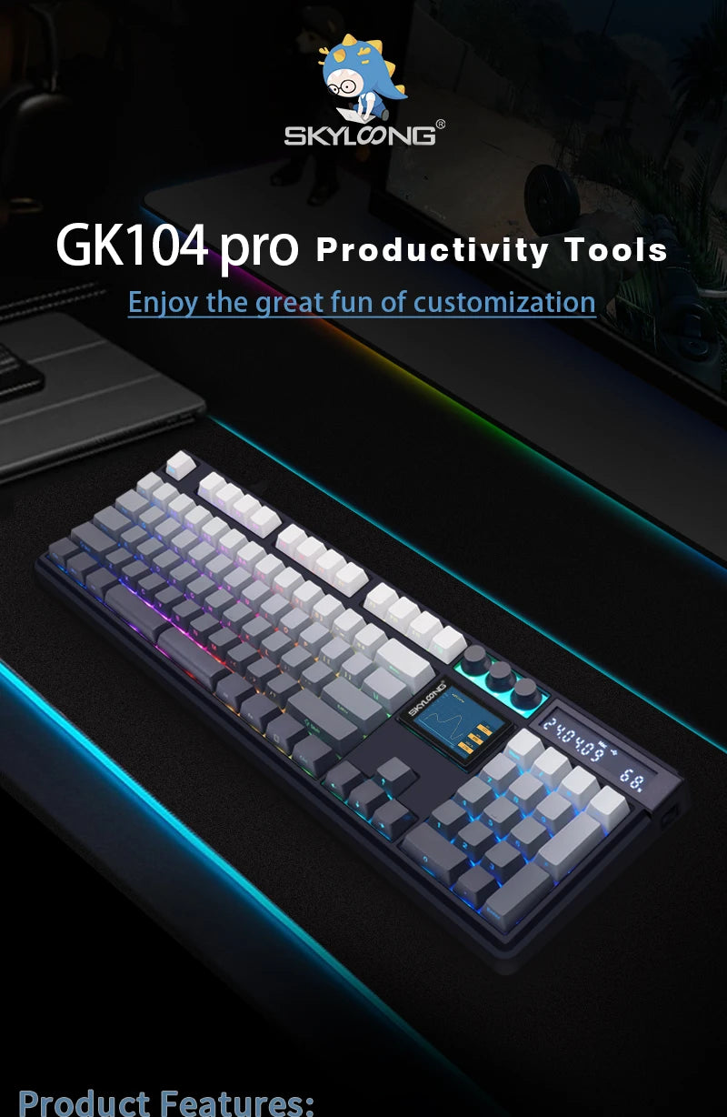 SKYLOONG GK104 Pro Full-Size 3-Mode Wireless Mechanical Keyboard with 3.0 Screen 3 Knobs Hot-Swappable Silent Switch PBT keycaps