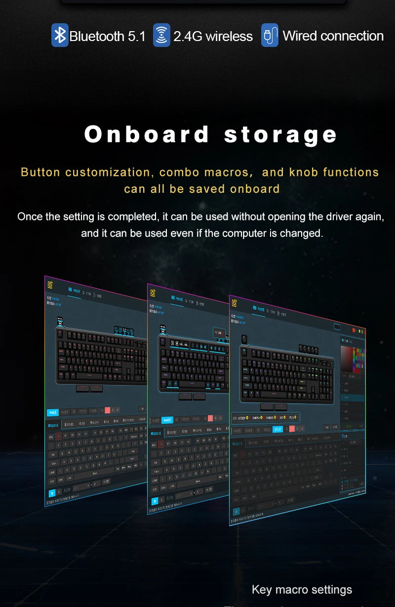 Includes 3 customizable macro knobs (expandable up to 6), allowing control over volume, zoom, lighting, and more via software. All keys (except FN) support custom functions for a personalized experience.